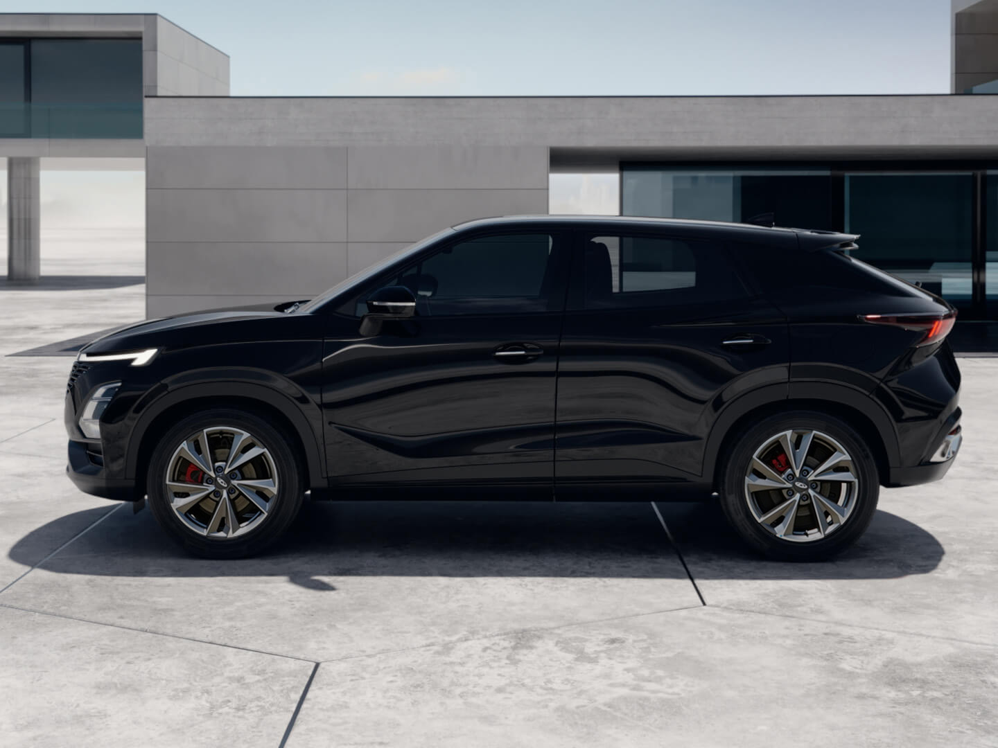 Сбоку OMODA С5 NEW демонстрирует элегантный силуэт с покатой линией крыши, перетекающей в заднюю часть автомобиля. Выразительные колесные арки вмещают стильные легкосплавные диски диагональю 17/18 дюймов, дизайн которых гармонично сочетается с общим стилем кроссовера. Задняя часть авто отличается лаконичностью и функциональностью. Диодные фонари подчеркивают ширину транспортного средства и придают ему современный вид. На крыше располагается спойлер, благодаря чему улучшаются аэродинамические характеристики и добавляются нотки спорта облику. Палитра оттенков окраса кузова предлагает на выбор разнообразные цвета, среди которых красный, серый, белый и так далее. Есть даже металлик, который доступен в самой минимальной комплектации.